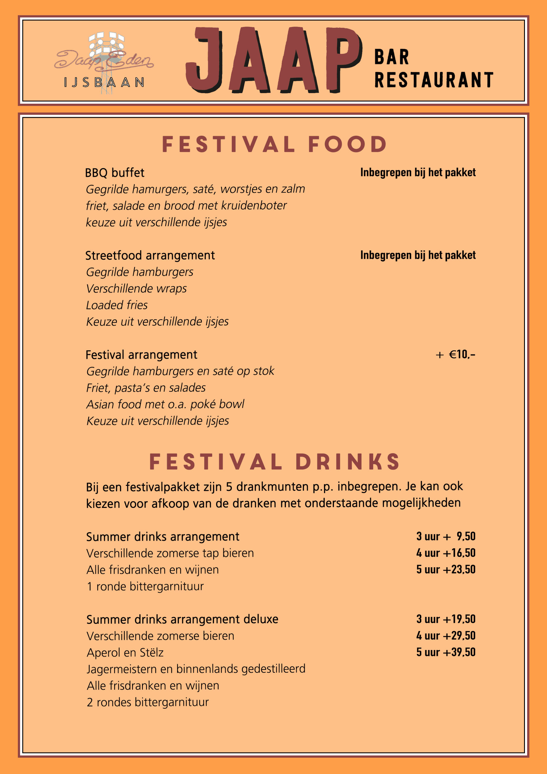 Het beste festival eten vind je op de ijsbaan deze zomer. Kies daarom een van de arrangementen en geniet.